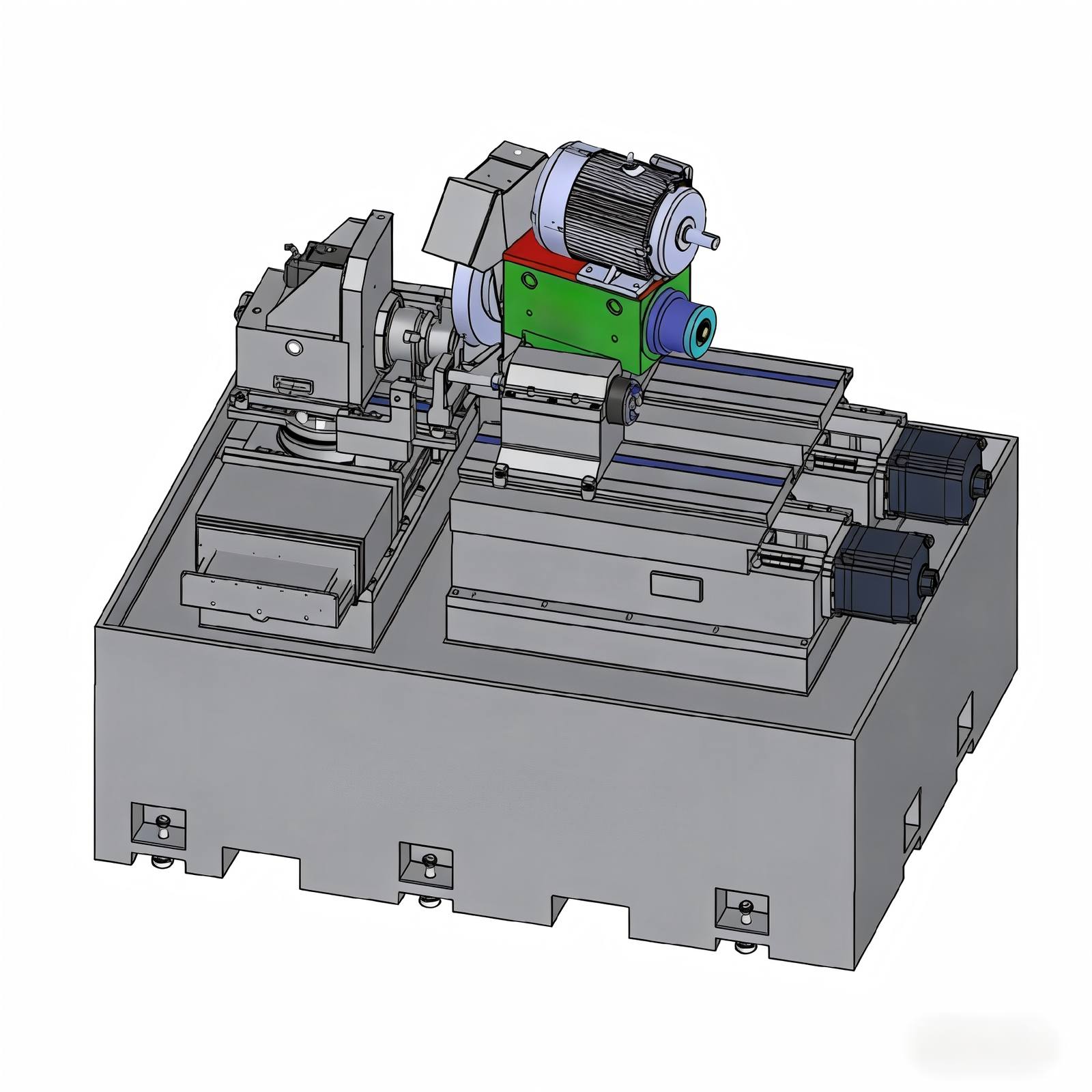and Z2 isthe feed axis of the internal grinding, C Axis (workhead)adopts servo motor to drive workpiece rotation, which can be combined with X axis and Z axis to complete the grinding of